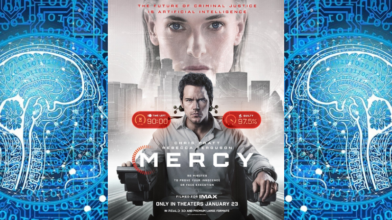 In the film, rising crime has led authorities to create MERCY, a program which gives an AI the power to try, convict and execute prisoners. Chris Pratt’s character has ninety minutes to prove his innocence or he’ll be executed.